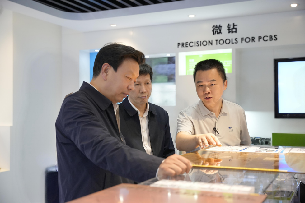 陳得信參觀金洲公司產品展廳,實地調研智造運管中心、產品測試中心、自動化及涂層生產現場、科技大樓等,詳細了解企業生產經營、科技創新、精益管理以及黨的建設等工作情況,對AI PCB相關產品創新成果、自動化建設進程與發展規劃、關鍵工序加工設備自制水平給予肯定,勉勵大家堅持“精細管理、精益求精、精耕細作”理念,持續增強核心功能、提升核心競爭力,全力保障國家產業鏈供應鏈安全穩定。